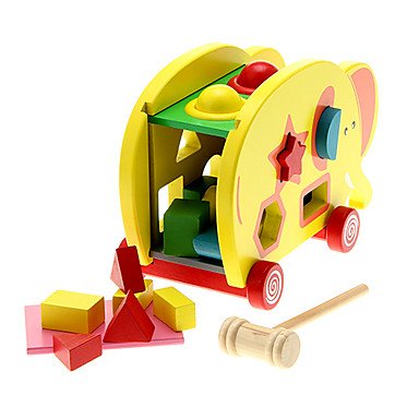 wspaniała zabawka rozbudzająca kreatywność dziecka. twoje dziecko najlepiej uczy się poprzez codzienną zabawę. zachęcając do zabawy przyczyniasz się do rozwoju jego zmysłów i zdolności poznawczych. zestaw składa się z 15 kolorowych klocków, dwie kule, drewniany młotek, sorter słoń do ciągnięcia na sznurku. specyfikacja: wysokość 14,5 cm, szerokość 21 cm, długość młoteczka 13 cm, długość sznurka 29 cm, materiał: drewno
